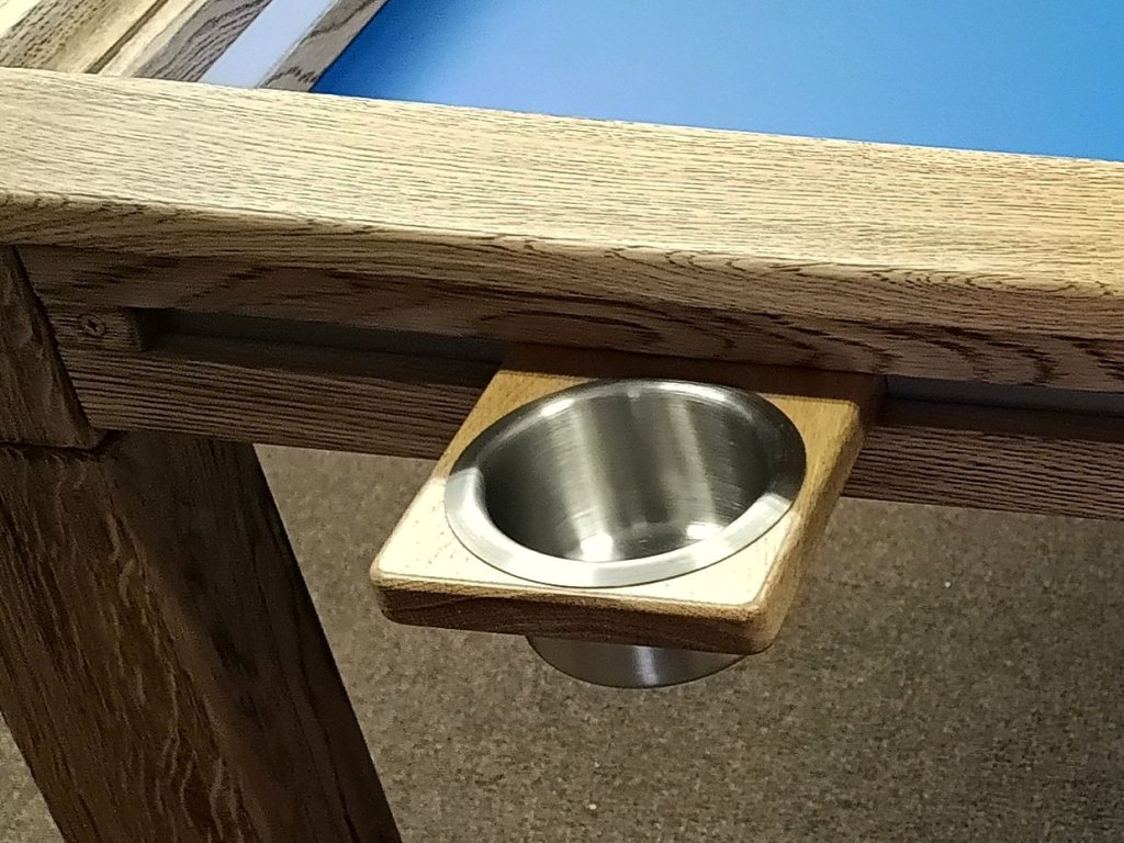 Konstrukce držáku je vyrobena z masivu tl. 20 mm. Materiál volíme podle materiálu stolu (Dub, Jasan, Javor). Miska je nerezová a pro snadnou údržbu, se dá jednoduše vytáhnout a zase vrátit zpět.