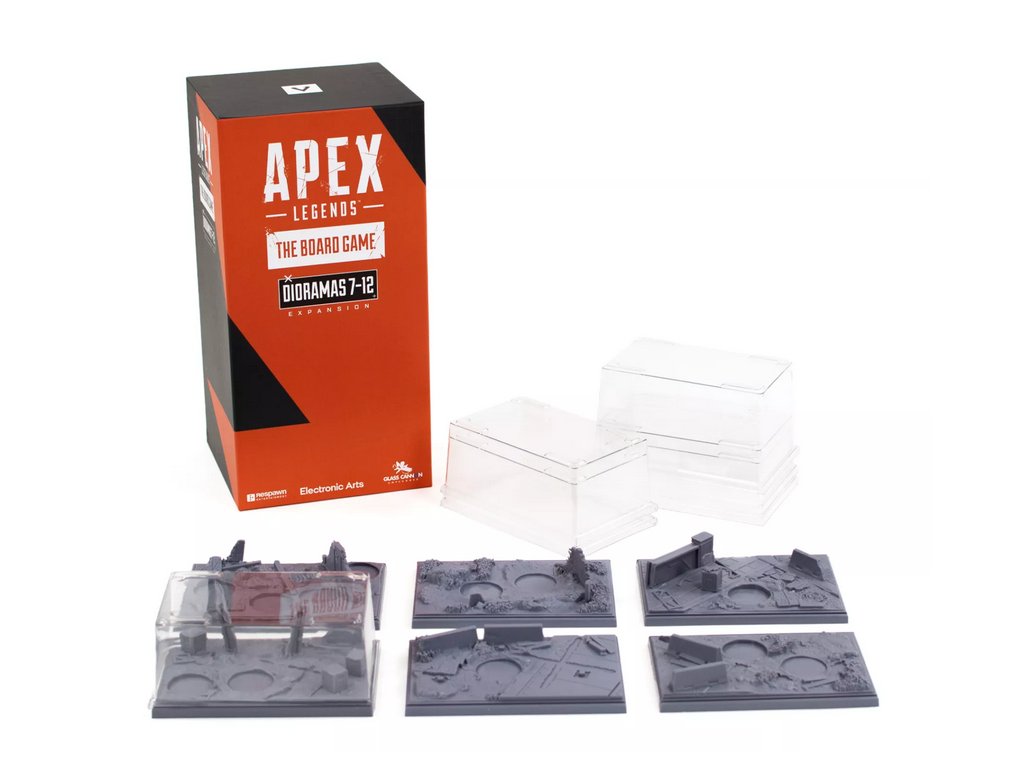 Rozšíření obsahuje 6 diorámat s držáky na karty pro všech 6 legend ze rozšíření Družstvo hry Apex Legends: Caustic, Crypto, Mirage, Octane, Revenant a Wattson. Nejenže díky nim Legendy vypadají obzvlášť oslnivě, ale jistě dodají nezaměnitelný šmrnc každé herně nebo výstavní polici. Diorámata fungují jako držáky na karty vlastností Legend a poskytují bezpečný způsob uložení figurek Legend a schopností, přičemž používají odpovídající průhledný kryt, který chrání obsah před poškozením během přepravy. Vyžaduje základní hrupro Apex Legends™. Toto rozšíření je čistě estetické a neobsahuje žádná nová pravidla.