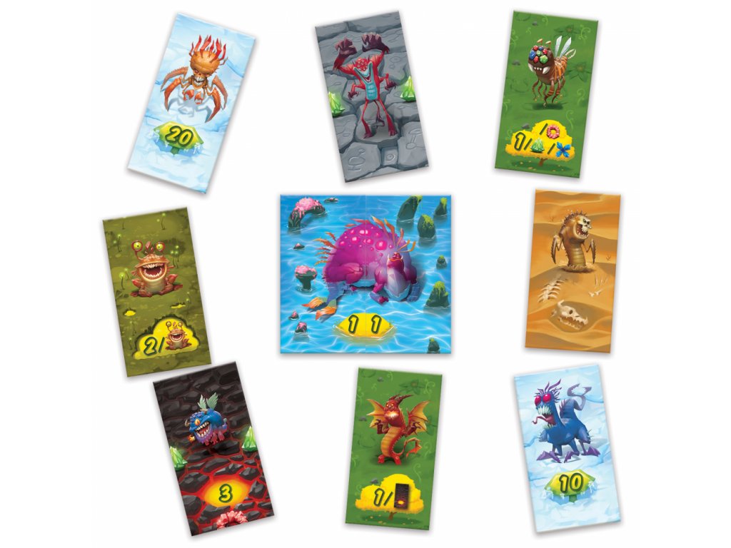 Ve hře Big Monster budete originálním způsobem draftovat dílky s monstry, kombinovat je, abyste vybojovali co nejvíce vítězných bodů, získávat bonusy za zaměření na různé ekosystémy a využívat schopnosti své postavy. Nezapomeňte se také dívat, co prozkoumávají vaši parťáci a soupeři, abyste jim pomohli – a nebo uškodili!