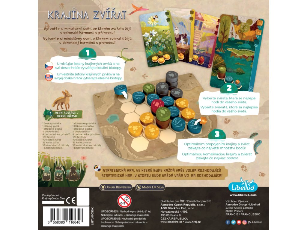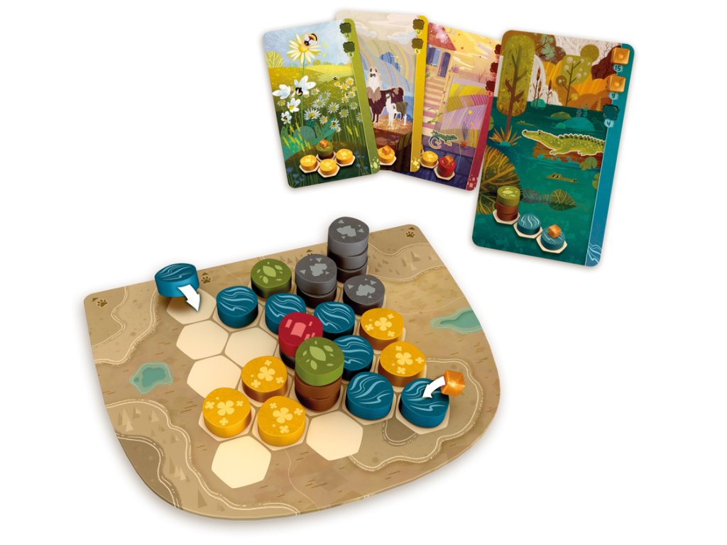 Ve hře KRAJINA ZVÍŘAT budete pomocí barevných žetonů vytvářet krajinu a biotopy pro svá zvířata.
