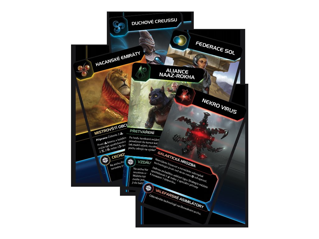 Zvolte si jakoukoli z galaktických mocností, včetně mazaných Hacanských emirátů, dobrodruhů z Aliance Naaz-Rokha, nebo tajemných Duchů Creussu.