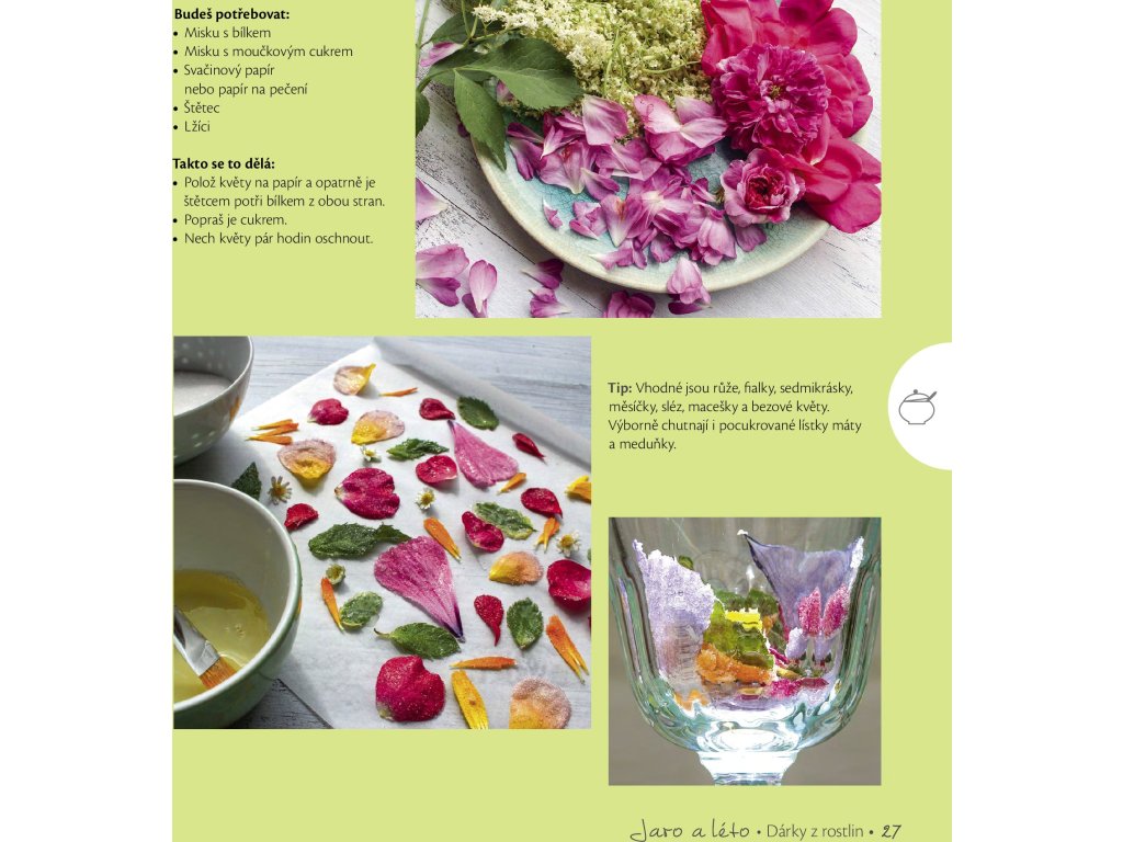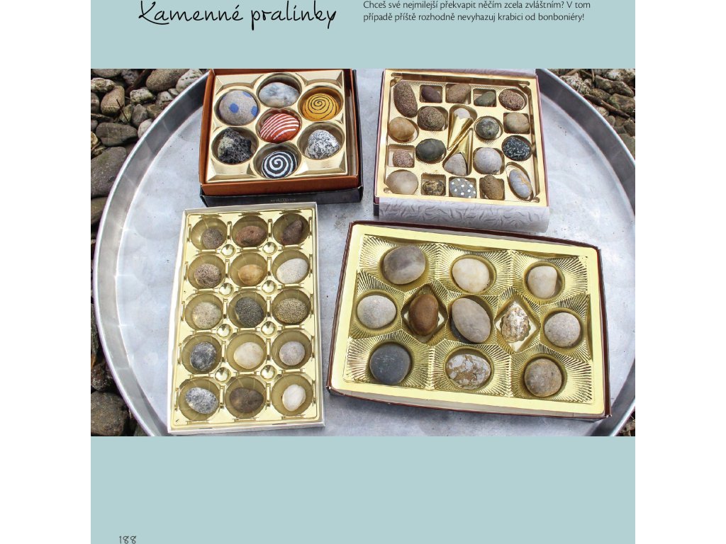 Kniha o tvoření. 100 dárků z přírody, které představuje tato plnobarevná a neobyčejně krásná kniha, lze všechny vyrobit prostřednictvím jednoduchých pomůcek a bez problémů to zvládnou i děti – v některých případech za přítomnosti dospělých.