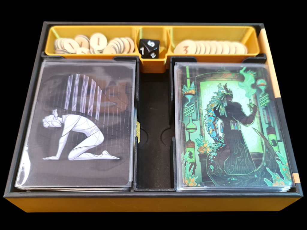 3D tištěný insert pro hru Rodozář: Marnivostina síň (2023) je vhodný také pro Rodozář: Bezcitova laboratoř (2024) a Rodozář: Pohrdova pevnost (2024). Všechny komponenty mají své jasně určené místo, takže příprava hry i její úklid bude otázkou chvilky.