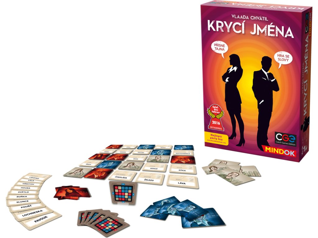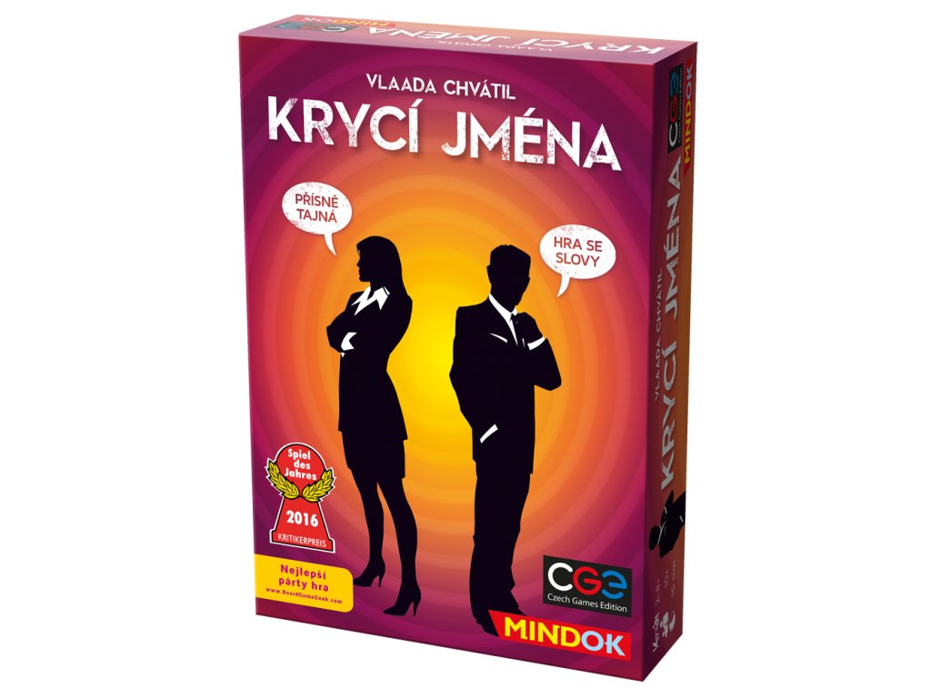 Hlavní špión řekne: "Vlna 2". Najdete ta dvě správná slova, která vám pomohou k vítězství? Skrytou identitu všech 25 agentů znají jen hlavní špióni. Ostatní hráči znají agenty pouze pod jejich KRYCÍMI JMÉNY. Týmy spolu soupeří o prvenství v úspěšném kontaktování všech svých agentů. Hlavní špióni předkládají jednoslovné indicie pro skupinu slov zobrazených na stole. Spoluhráči se pokoušejí uhodnout slova své barvy a vyhnout se slovům patřícím soupeři. Opravdový profesionál nikdy nekontaktuje nájemného vraha. KRYCÍ JMÉNA: skvělá zábava pro všechny, kdo si rádi hrají se slovy.