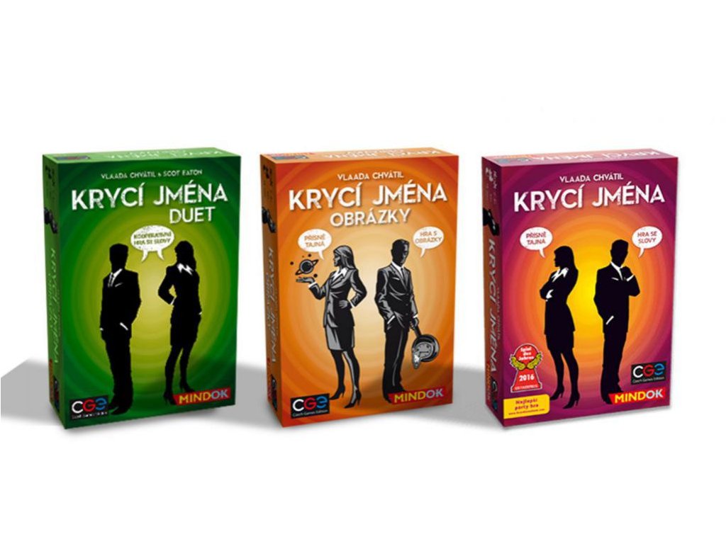 Sada oblíbené hry Krycí jména obsahuje základní hru, Krycí jména: Obrázky a Krycí jména: Duet.