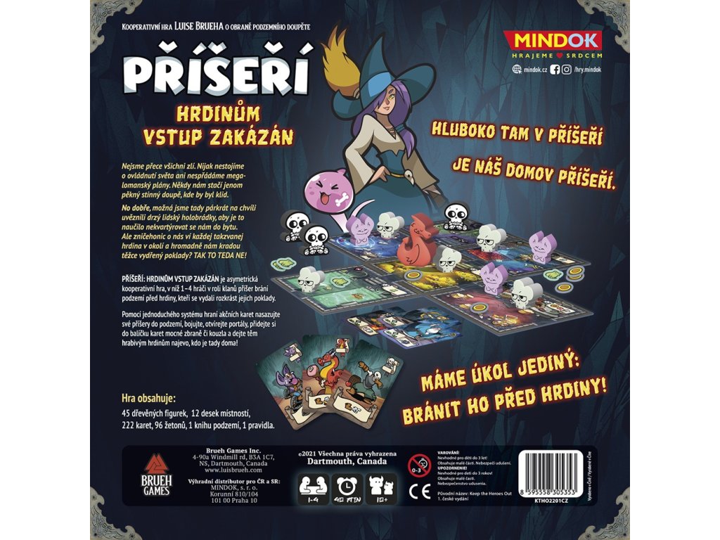 PŘÍŠEŘÍ: HRDINŮM VSTUP ZAKÁZÁN je asymetrická kooperativní hra, v níž 1–4 hráči v roli klanů příšer brání podzemí před hrdiny, kteří se vydali rozkrást jejich poklady. Pomocí jednoduchého systému hraní akčních karet nasazujte své příšery do podzemí, bojujte, otvírejte portály, přidejte si do balíčku karet mocné zbraně či kouzla a dejte těm hrabivým hrdinům najevo, kdo je tady doma!