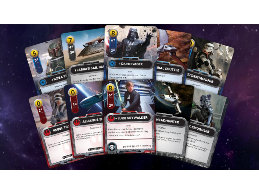 Zažijte epické strategické bitvy ve Star Wars:The Deckbuilding Game! V této snadno naučitelné hře v partii dvou hráčů znovu ožije konflikt mezi Galaktickým impériem a Povstaleckou aliancí. Verbujte postavy, najměte si lovce odměn, používejte Sílu a ničte nepřátelské základny!
