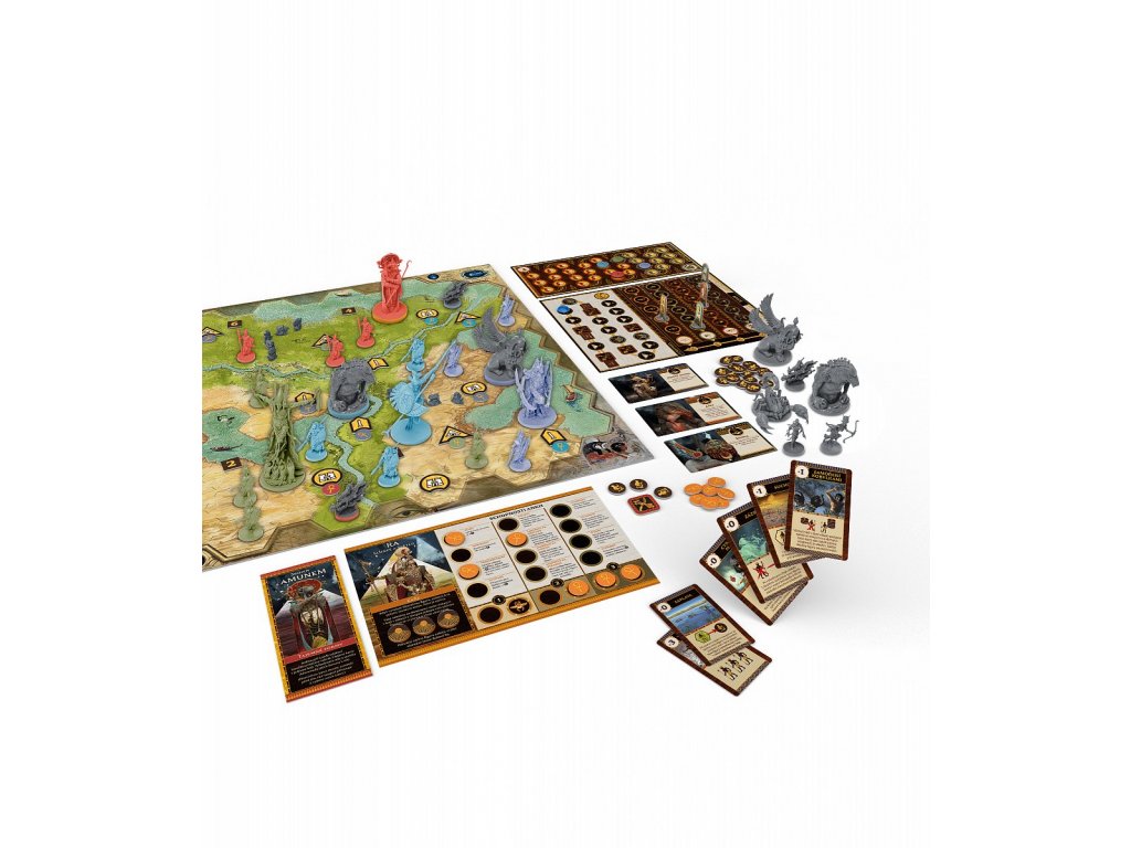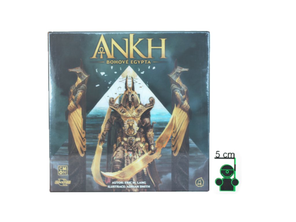 žetonů Ankh o 1 plastový drahokam o 1 hrací plán o 2 hlavní desky o 10 desek bohů o 46 karet o 197 žetonů