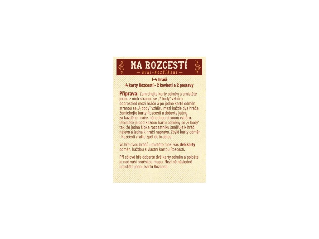 Toto minirozšíření je kompatibilní jak se sólovou hrou, tak hrou více hráčů. Najdete zde také dva nové kovboty a dvě nové postavy.