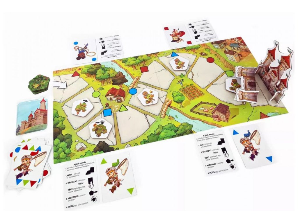 - Monstrum chytíte tak, že zahrajete kartu se stejným tvarem a barvou, jakou má políčko s monstrem.