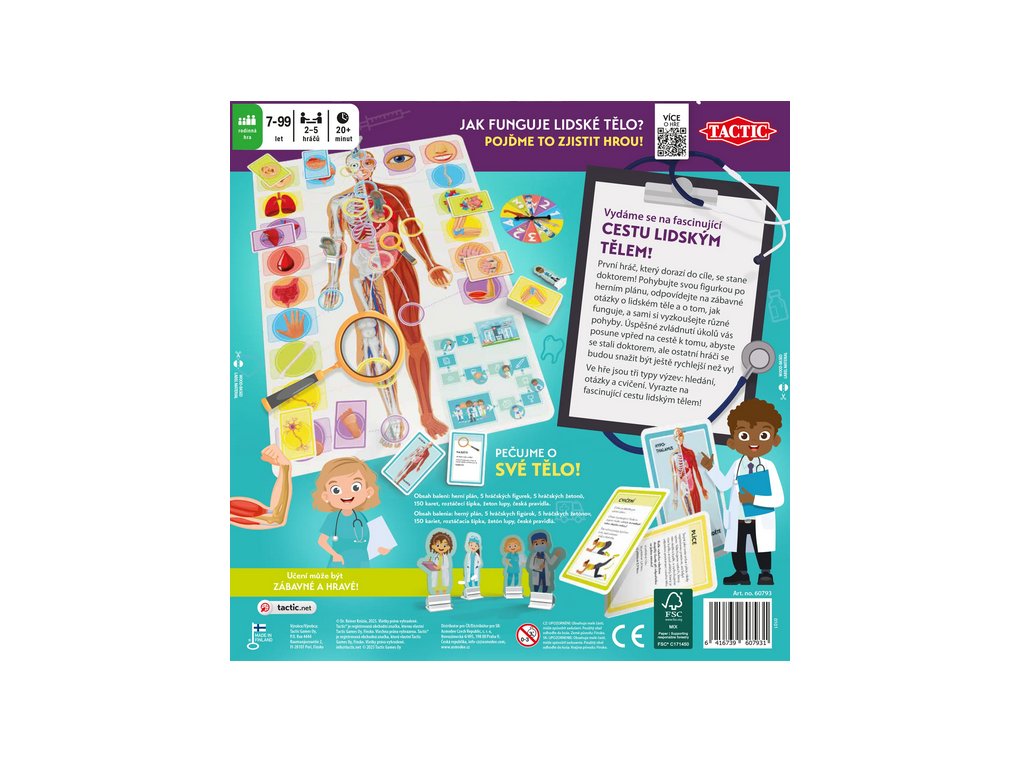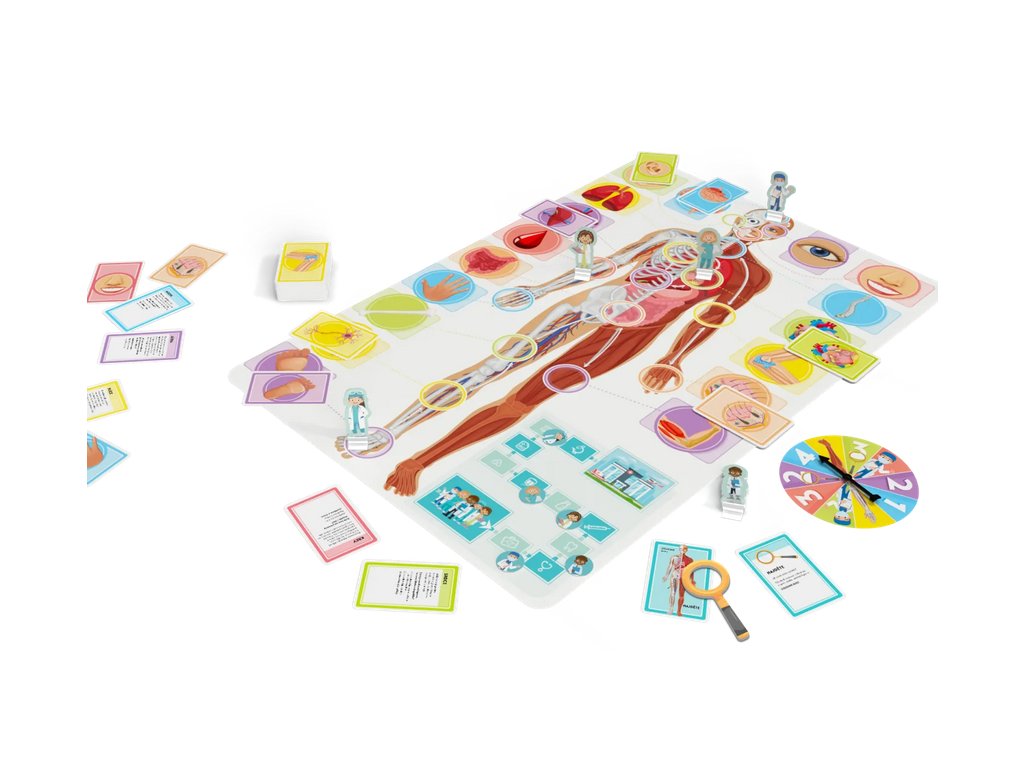 První hráč, který dorazí do cíle, se stane doktorem! Pohybujte svou figurkou po herním plánu, odpovídejte na zábavné otázky o lidském těle a o tom, jak funguje, a sami si vyzkoušejte různé pohyby. Úspěšné zvládnutí úkolů vás posune vpřed na cestě k tomu, abyste se stali doktorem, ale ostatní hráči se budou snažit být ještě rychlejší než vy!