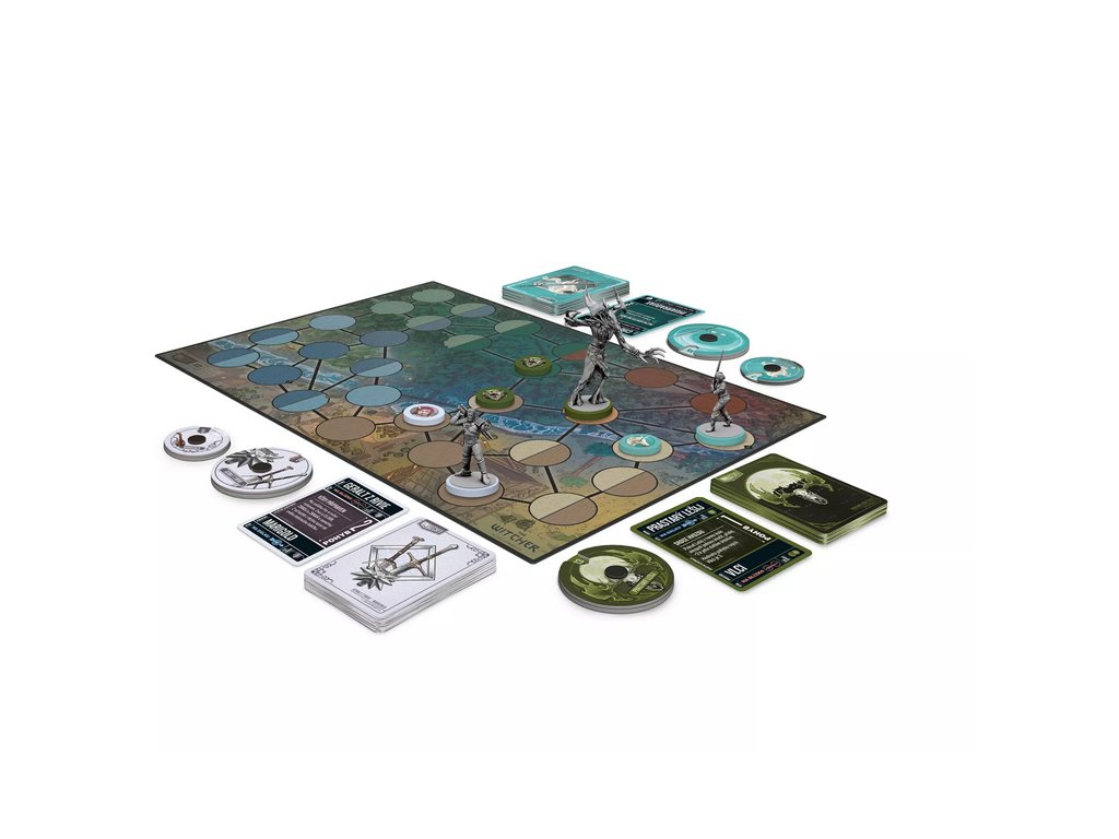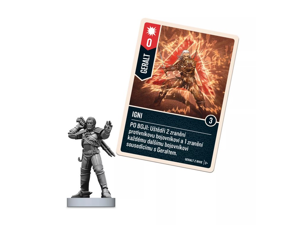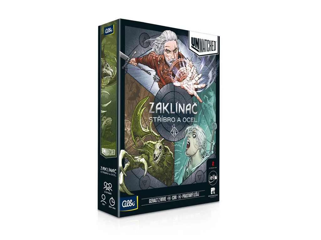 Unmatched Zaklínač - Stříbro a ocel obsahuje: 3 figurky, 4 žetony pomocníků, 5 ukazatelů zdraví, 99 karet, 1 oboustranný herní plán, pravidla v češtině.