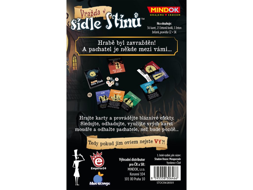Noční krajina se stává svědkem hrůzného činu – hrabě Stín byl zamordován! V luxusní vile hraběnky Stínové je nyní uvězněn jak pachatel, tak i jeho potenciální komplicové a na vás je, abyste odhalili pravdu dříve, než pachatel unikne podezření.